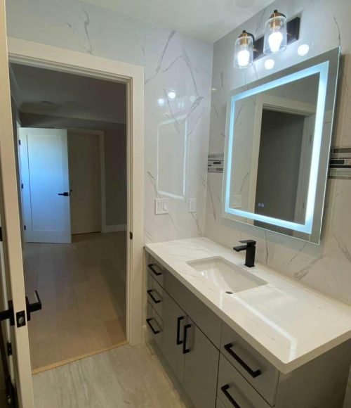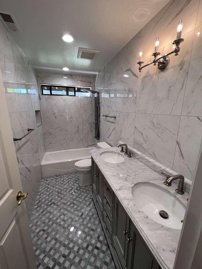 Bathroom remodeling with modern fixtures, vanities, and tiles. We create functional and stylish spaces.