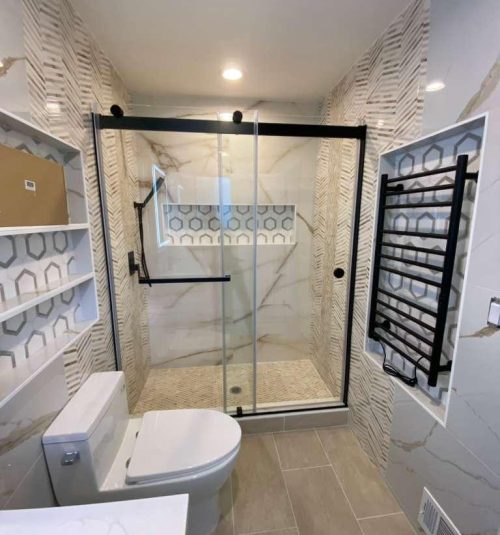Bathroom remodeling with modern fixtures, vanities, and tiles. We create functional and stylish spaces.